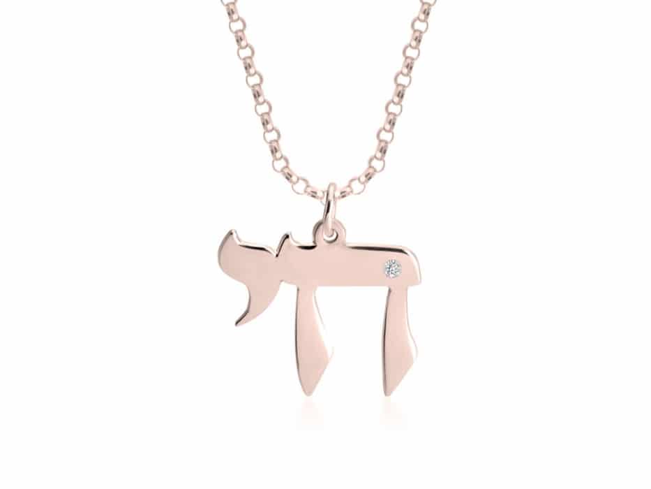 Chai Necklace | Life Pendant – 24k Gold Plated Hebrew | Diamond Accent